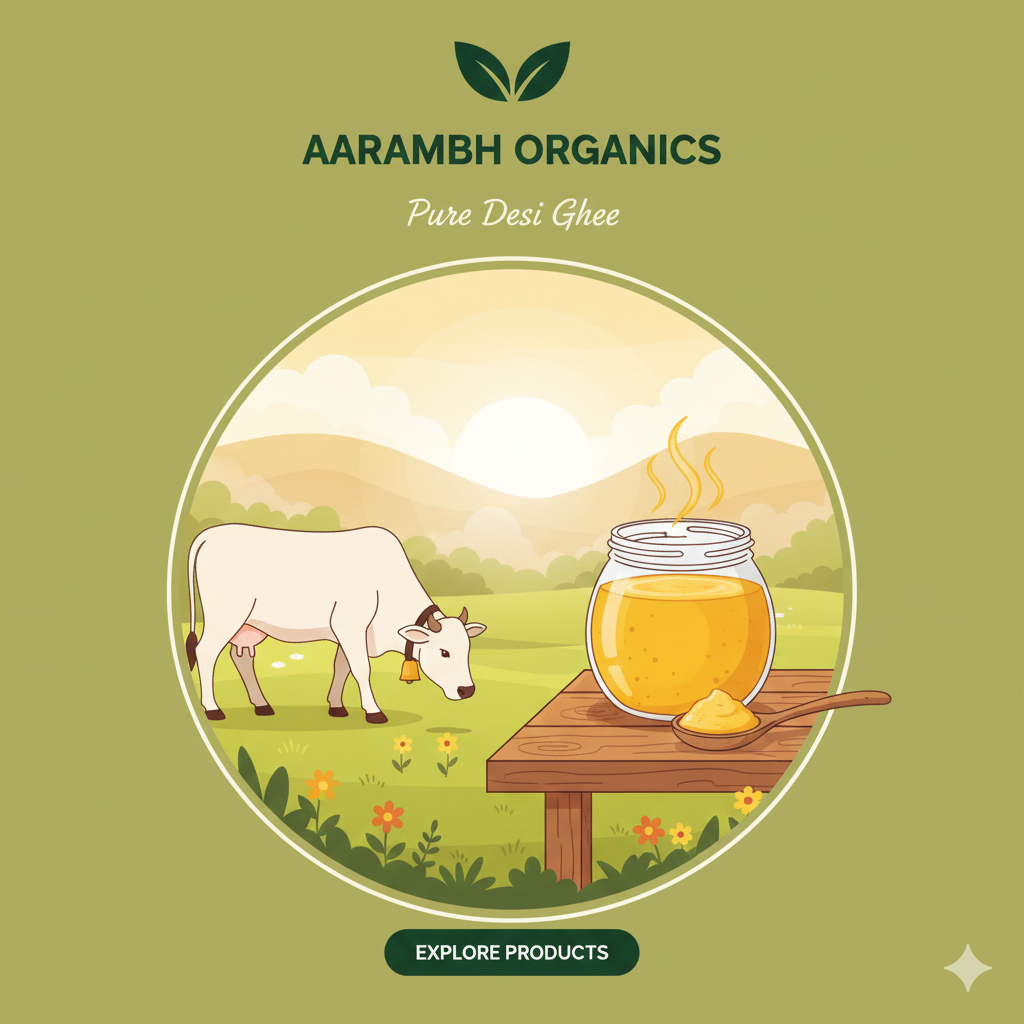 At Aarambh Organics, we believe that true purity begins with care. Our ghee is made using traditional methods, sourced from ethically raised cows, and crafted with the utmost attention to quality. Every drop reflects our commitment to natural goodness, offering a rich aroma, authentic taste, and wholesome nourishment. With Aarambh Organics, you don’t just choose ghee—you choose a promise of purity, honesty, and the gentle touch of nature in every jar.
